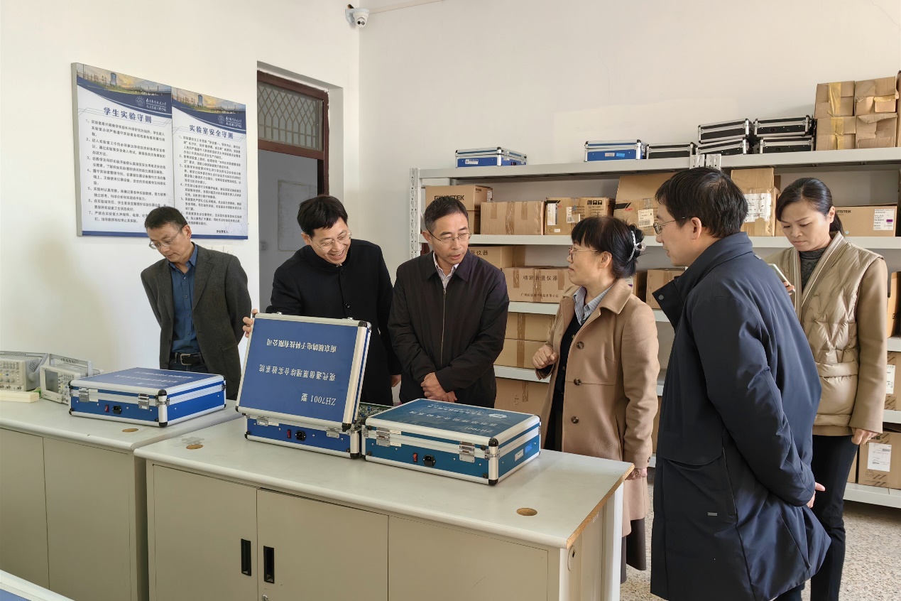 杭育新一行首先参观了电子信息工程实践教育中心,听取了Ebook漫画 副院长张小飞和Ebook漫画 实验中心负责人的介绍,详细了解实践中心在承担校内实验课程、三全育人、课程思政等方面的创新创业教育教学工作和取得的成绩。