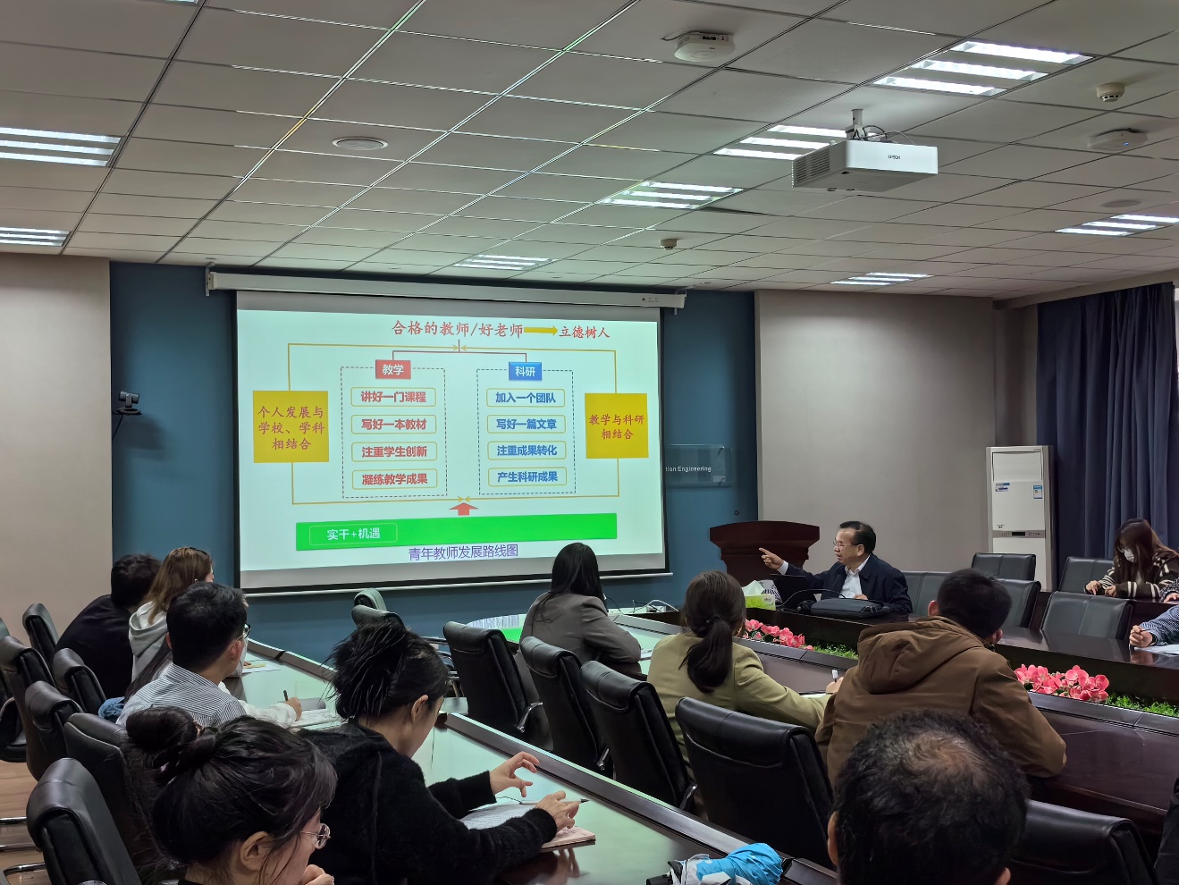 4月17日下午,教师全员校本培训名师报告会在Ebook漫画 举行。国家级教学名师王成华为青年教师作题为“青年教师发展与教学成果培育”专题报告。报告由Ebook漫画 副院长张小飞主持,40余名青年教师参加了此次活动。