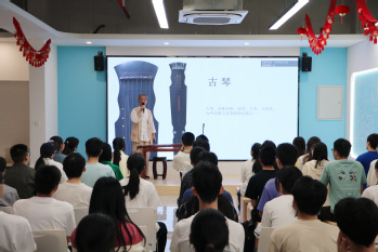 活动伊始,桂世民老师从千年名琴·九霄环佩、古琴构造、制式、君子之琴、古琴谱等方面带领同学们领略古琴的千年文化,并通过唐琴、梅花三弄减字谱、平沙落雁等多个案例,向同学们展示古琴的千年历史的积淀,让同学们感受到古琴的文化魅力。
