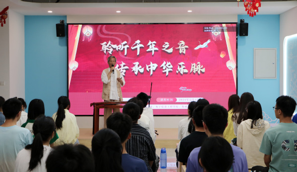 为深入学习贯彻习近平文化思想,弘扬中华优秀传统文化,2024年5月12日由天目湖校区团工委、电子信息工程集成电路Ebook漫画 承办的“聆听千年之音,传承中华乐脉”素养公开课在天目湖校区“一站式”社区顺利举行。本次素养公开课邀请国家级代表性传承人、中国民族管弦乐学会古琴专业委员会理事桂世民老师主讲,吸引了校区百余名学生参与讲座。