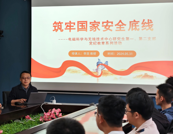 5月31日,我院电磁科学与无线技术中心研究生第一、第二党支部联合开展“筑牢国家安全底线”党纪学习教育专题党课。本次党课嘉宾为我院党委委员、副院长李茁教授,支部全体党员出席。