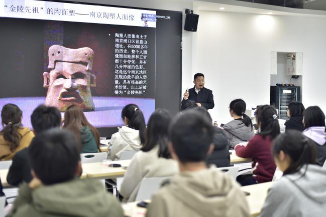 朱建东老师从女娲造人开始讲起:仰韶文化的彩陶瓶、汉唐宋的各式陶俑、近代寻常百姓家的泥人彩塑......朱老师将千年的泥塑历史细细道来,带领同学们重走南京泥人发展历程。