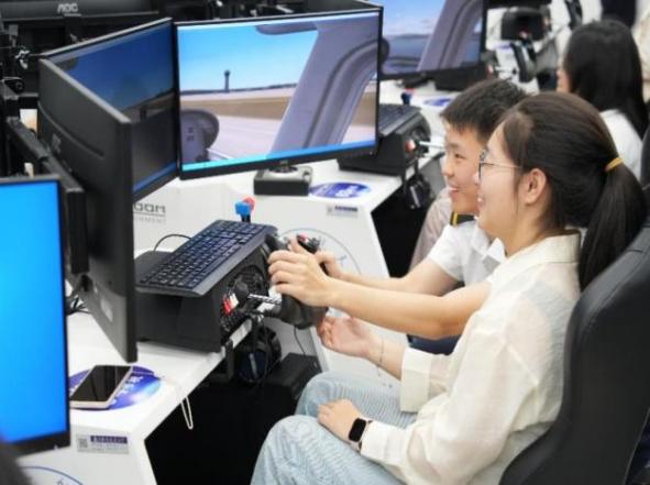 随后,同学们在飞行技术学生的指导下分批进行了飞行操作,体验了从起飞、巡航到降落的整个过程。在模拟飞行过程中,同学们不仅要精确掌握飞行技巧,还要学会在紧急情况下做出正确判断,确保飞行安全,大家深刻感受到了飞行任务的严谨以及对专业知识的严格要求。