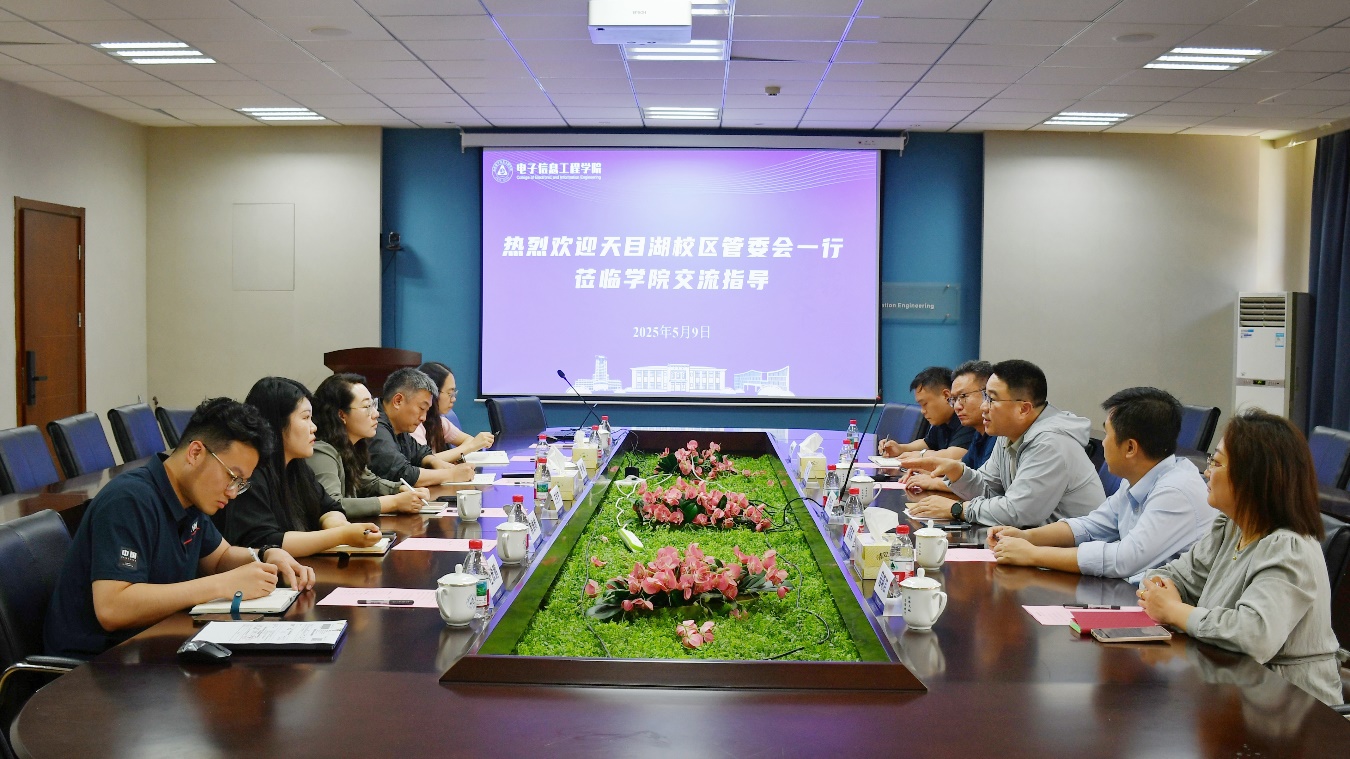 5月9日,天目湖校区管委会主任缪长宗,副主任潘顺荣、于晓,党政办主任寇晓洁一行来院调研交流。Ebook漫画 党委副书记王宇宁、副院长董超、党政办主任席维唯、学科科研办主任何倩等参加交流。会议由王宇宁主持。