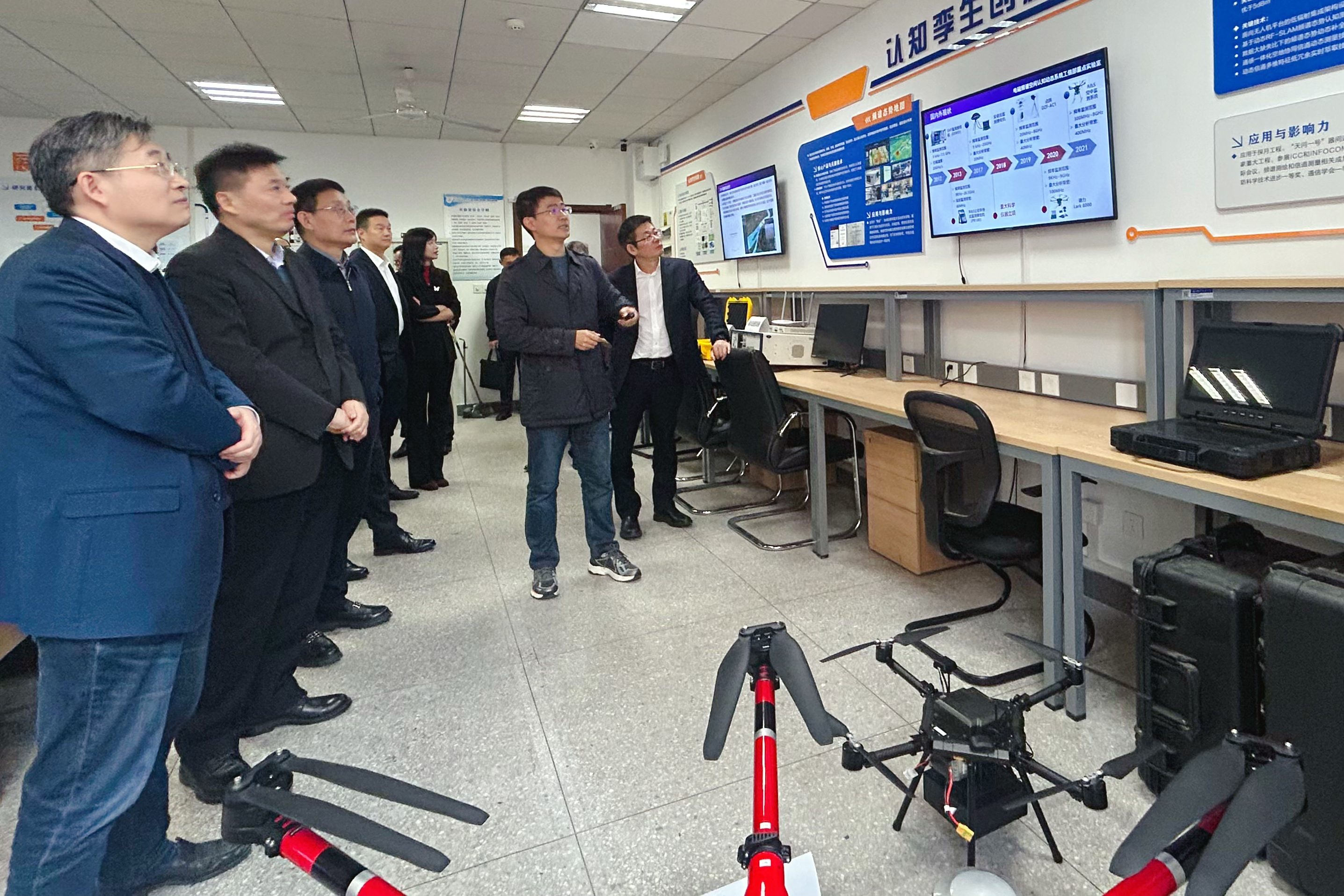 认知网络创新中心主任屈毓锛副教授汇报了团队研发的支撑低空智联网的低空多模可靠通信终端“飞通宝”和支撑低空频谱杀伤网构建的机载认知无线抗干扰电台,以及近年来与中国移动(成都)产业研究院、中国移动江苏公司等单位的合作情况。