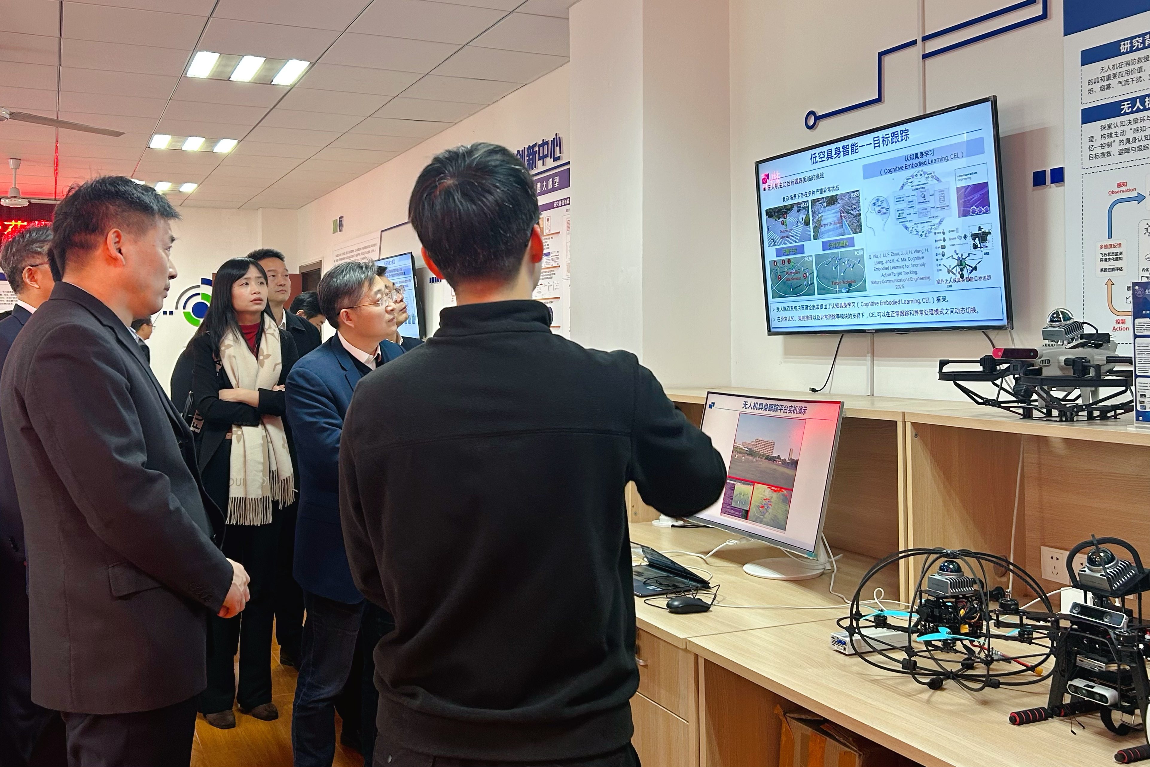 认知智能创新中心阮天宸助理研究员首先针对现有通用大语言模型的局限性,展示了类脑推理电磁频谱大模型的架构设计和应用成果。随后,针对无人机在目标跟踪及室内搜救等场景中面临的挑战,分享了低空具身智能的研究进展,并结合视频进行了动态演示。