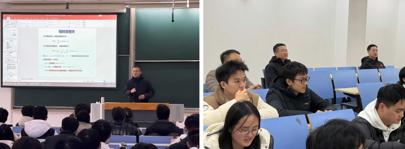 在“第一课堂”,孙泽洲走进了本科生《语音信号处理》的教学现场。课前,孙院长给授课教师李婕赠送了专著《深空探测技术》,并与上课师生进行了亲切交流,分享求学与科研感悟,详细询问了课程教学进展及学生知识掌握情况。课中孙院长认真聆听授课内容,细致记录教学环节设计、重难点讲解及师生互动等情况。