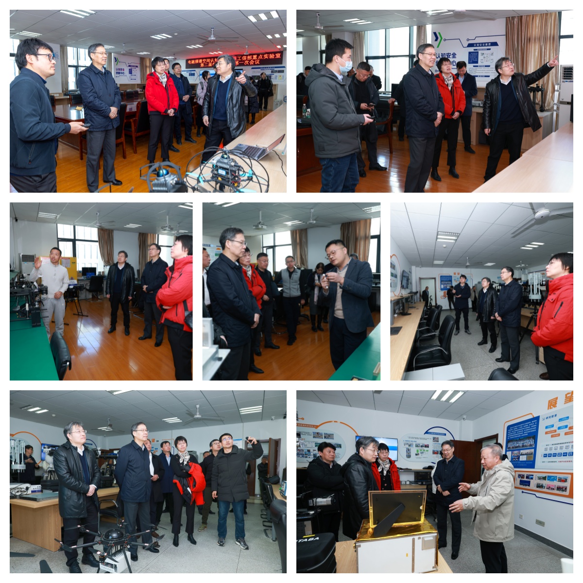 会议伊始,吴启晖带领与会委员与专家参观实验室成果展示,6位骨干研究人员通过实物、视频以及展板等多种形式,向各位委员与专家介绍了实验室在认知智能、认知安全、认知网络、认知射频、认知孪生、认知定位共6个方向的研究成果,与会委员与专家对实验室成果的创新性与应用价值给予了高度评价,并结合实际应用场景,就成果落地应用提出针对性建议。