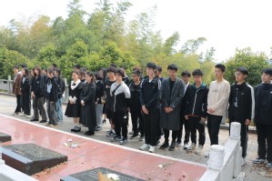 在新四军江南指挥部纪念馆,在讲解员的带领下,同学们参观了指挥部旧址,通过英雄遗物和文献资料,了解了抗日战争中先辈们血与火的革命生活,体悟了前辈们的顽强意志和伟大精神。将军墓前,同学们列队肃立默哀,向粟裕将军致以最崇高的敬意和最深切的哀思。
