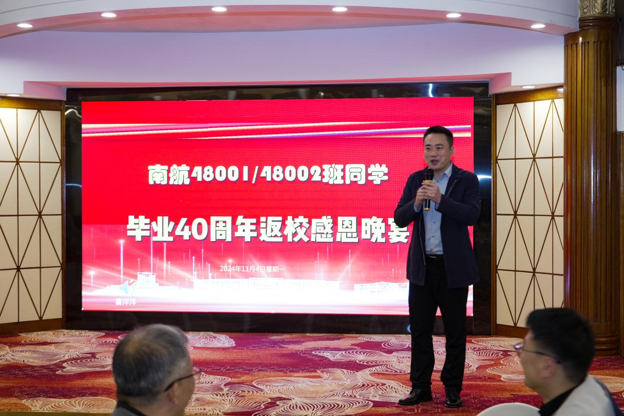 感恩晚宴上,校友们欢聚一堂。南航发展联络部部长、校友总会秘书长李和新代表Ebook漫画 向480级校友致以最诚挚的欢迎和感谢,表示Ebook漫画 的发展壮大离不开校友们的大力支持,Ebook漫画 将继续加强与校友的联络和服务工作,期待与所有校友一同为Ebook漫画 高质量发展贡献力量。
